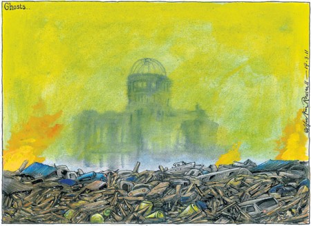 Or is there another word, commenting in more accurate terms Hiroshima, Tschernobyl, Fukushima? Didn’t think so. According to Rowson, human History is a battlefield of vanity, stupidity and sheer bad luck. And this seems to be as good as it gets, and religion is not saving anyone, just adding to the general meltdown, that has started with our creation. And in this respect, I can’t help thinking about Quark’s comment on humans shortly after arriving on Earth (for the two people who don’t know “Star Trek Deep Space Nine” and the Ferengis….Quark is a Ferengi, a greedy but smart race, not exactly burdened with morality): “They Irradiated Their Own Planet?“. Now for those of you who want it told in more words, here’s a very interesting and unusual comment by the author himself about religion, that sums up his view on a belief in a better tomorrow and in the human mind: